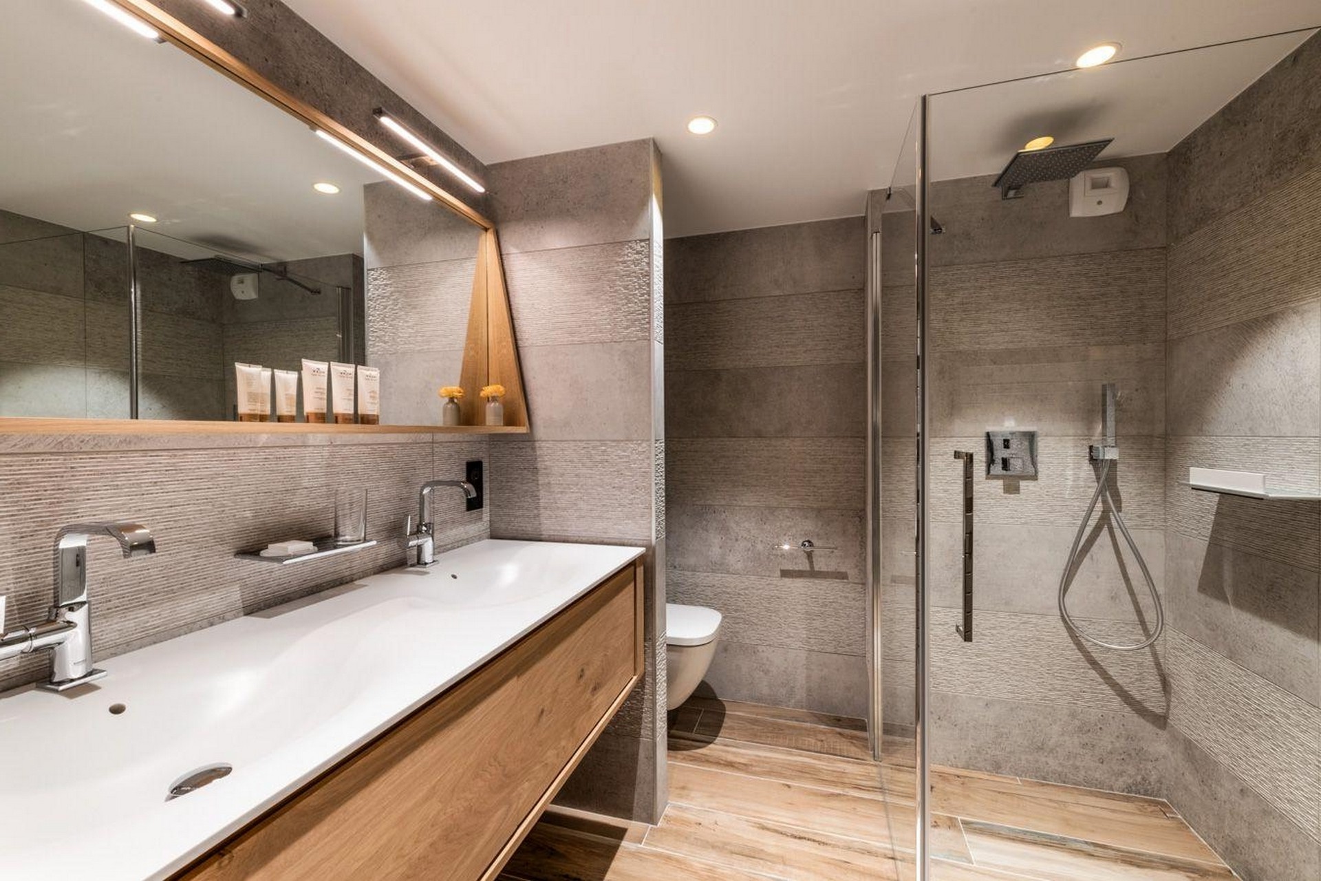 Our premium alpine chalet (up to 10 guests) offers 5 bedrooms and 5 bathrooms.