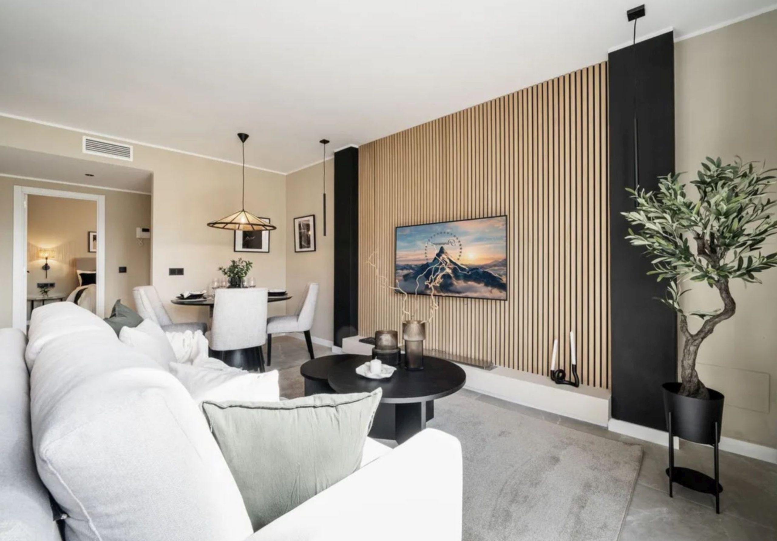 Spacious Accommodations: Apartamento San Eugenio Tenerife in Costa de Adeje offers a spacious apartment with three bedrooms and three bathrooms. The living room includes a sofa and dining area, ensuring comfort for all guests.