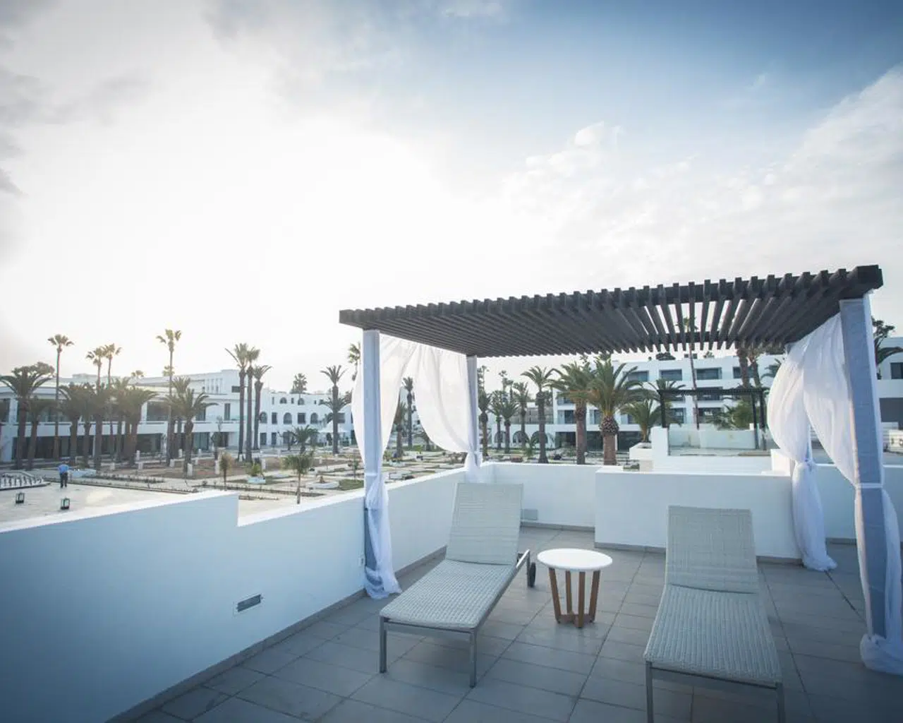 L'hôtel est situé à 4 kilomètres du centre-ville où l'on trouve l'ancienne kasbah de Hammamet construite au IXe siècle. Pour les passionnés de golf, l'hôtel se trouve à quelques minutes des deux parcours de golf Citrus et Yasmine.