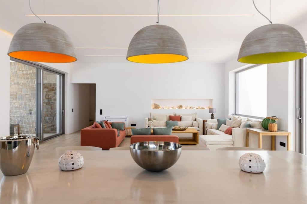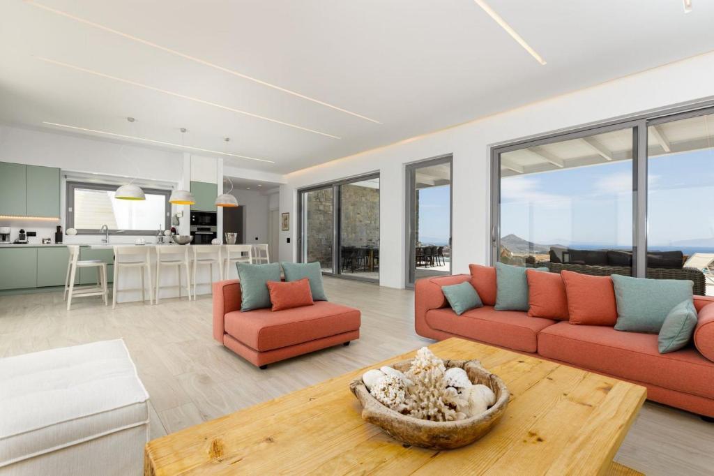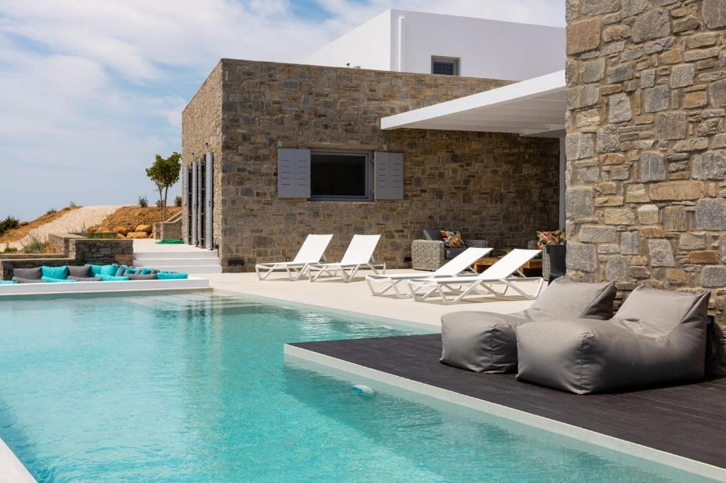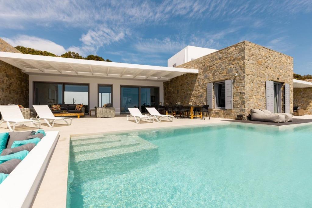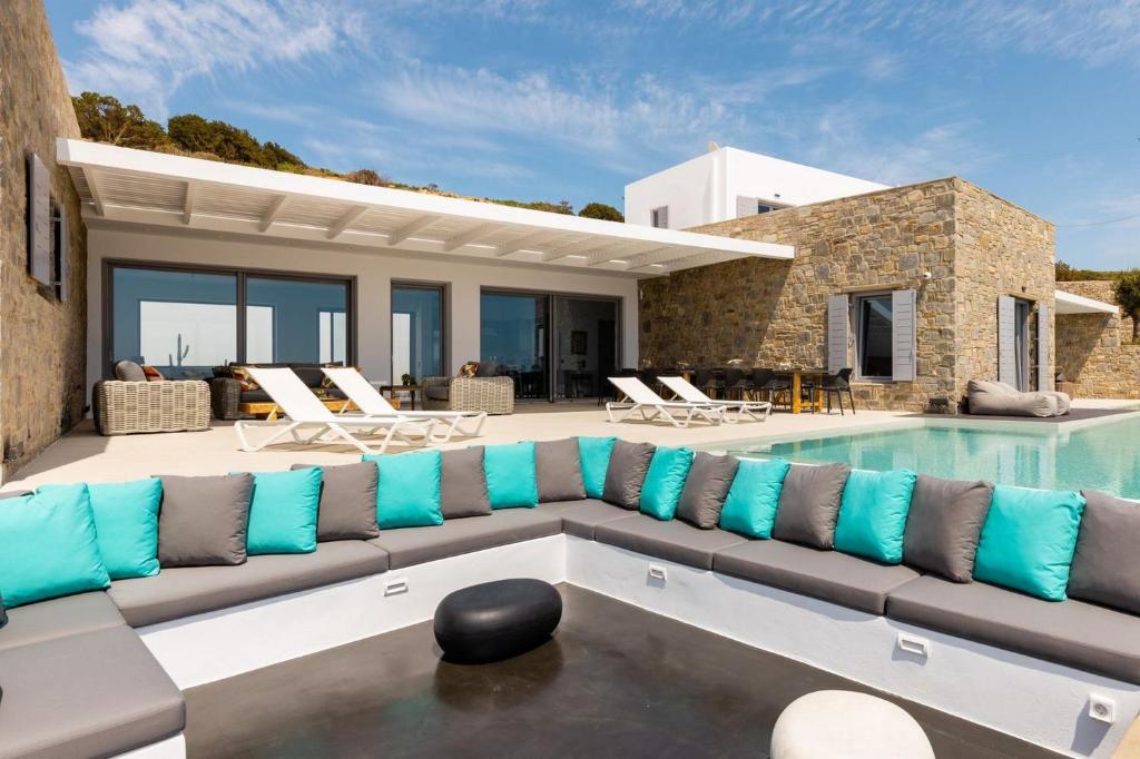 Spacious Accommodation: Luxury Villas Kalafati Mikonos in Mýkonos City offers a spacious holiday home with five bedrooms and five bathrooms. The property includes a living room and a fully equipped kitchen.