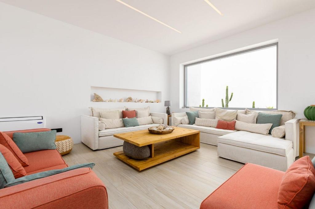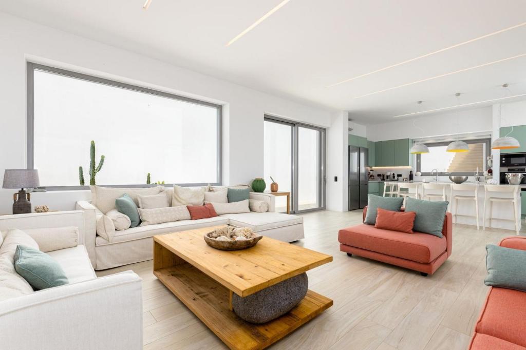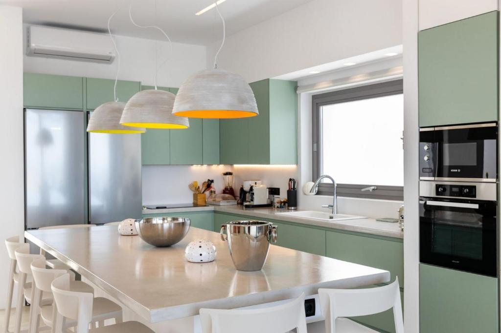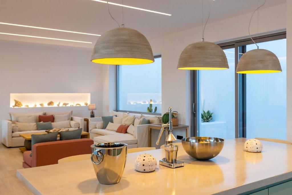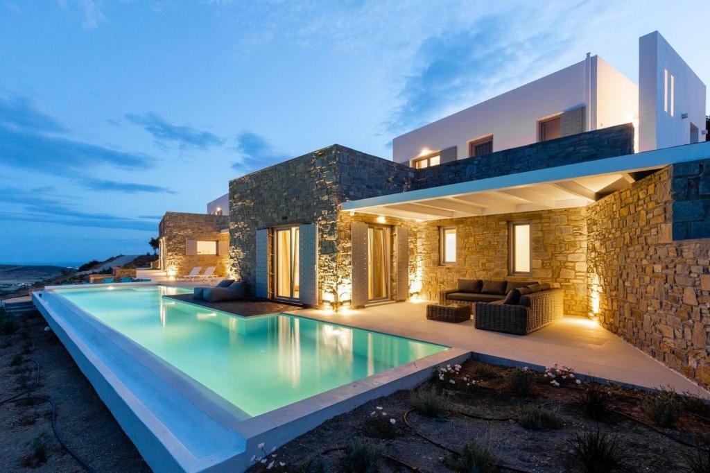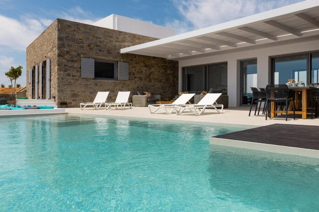 Spacious Accommodation: Luxury Villas Kalafati Mikonos in Mýkonos City offers a spacious holiday home with five bedrooms and five bathrooms. The property includes a living room and a fully equipped kitchen.