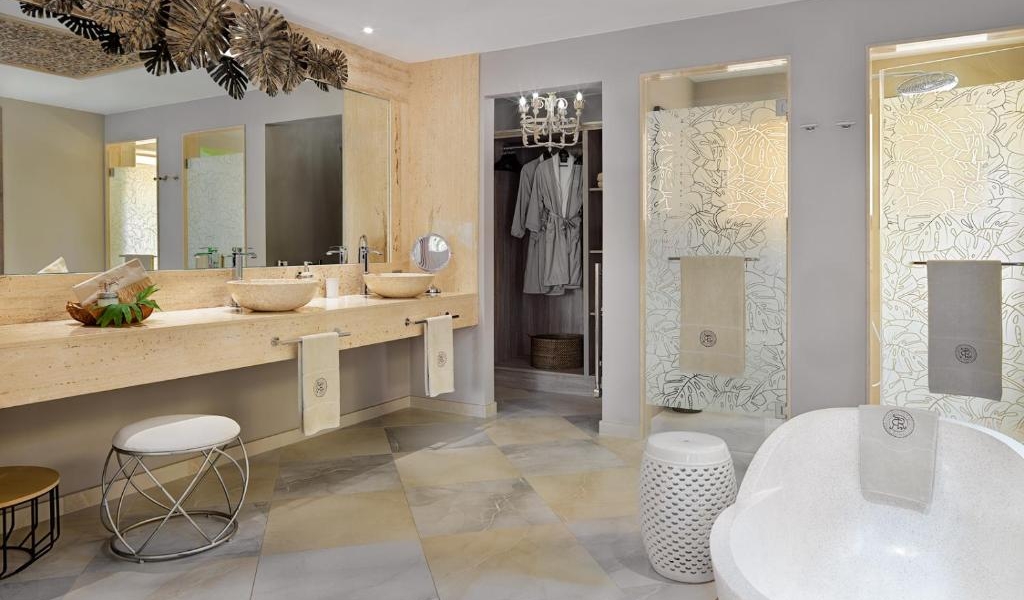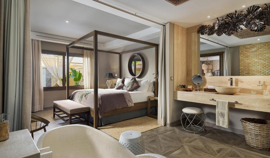 Each villa includes a private bathroom with a bathtub and free toiletries, along with a terrace and pool view.