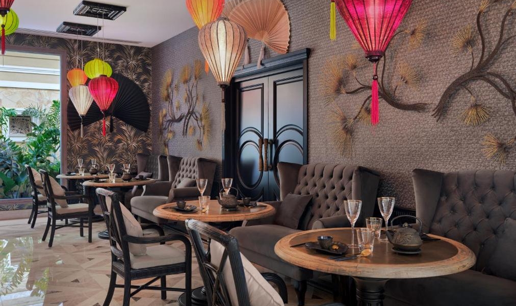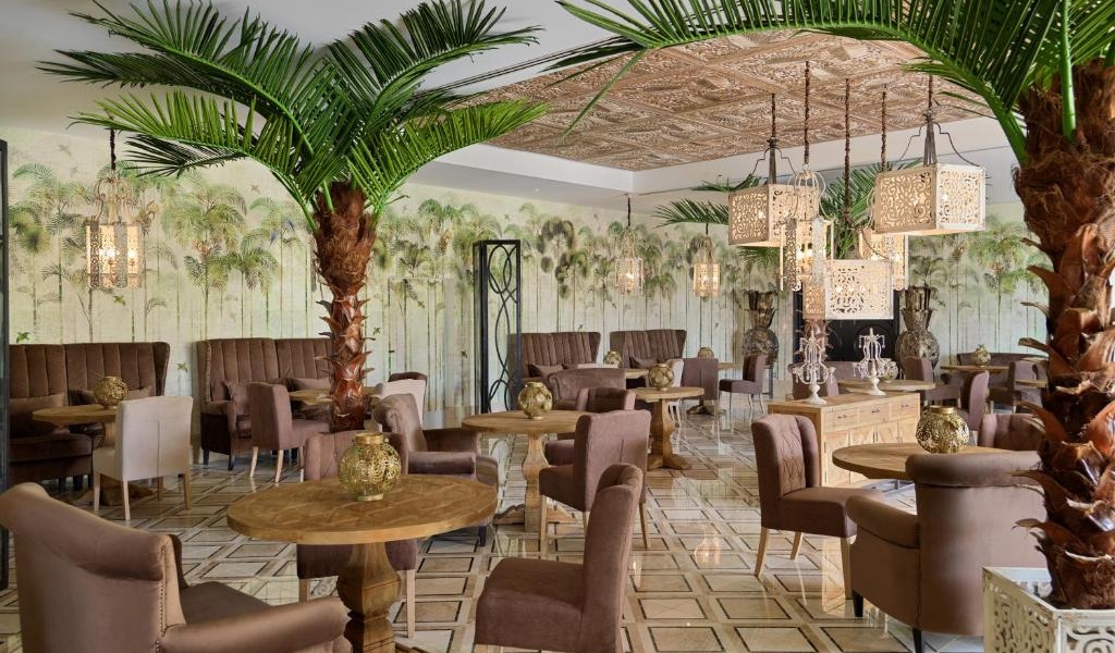 Guests can relax in the garden or at the wellness and spa center, which features a sauna and hammam.