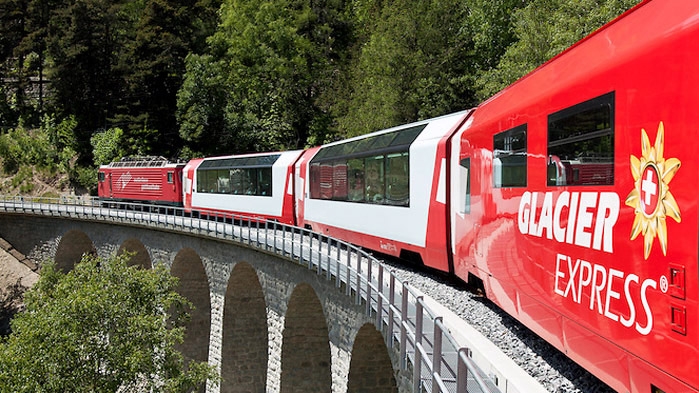 Optional: panoramic journey aboard the Glacier Express route* — one of the most scenic train rides in the world, crossing mountain valleys, lakes, forests, and breathtaking viaducts.